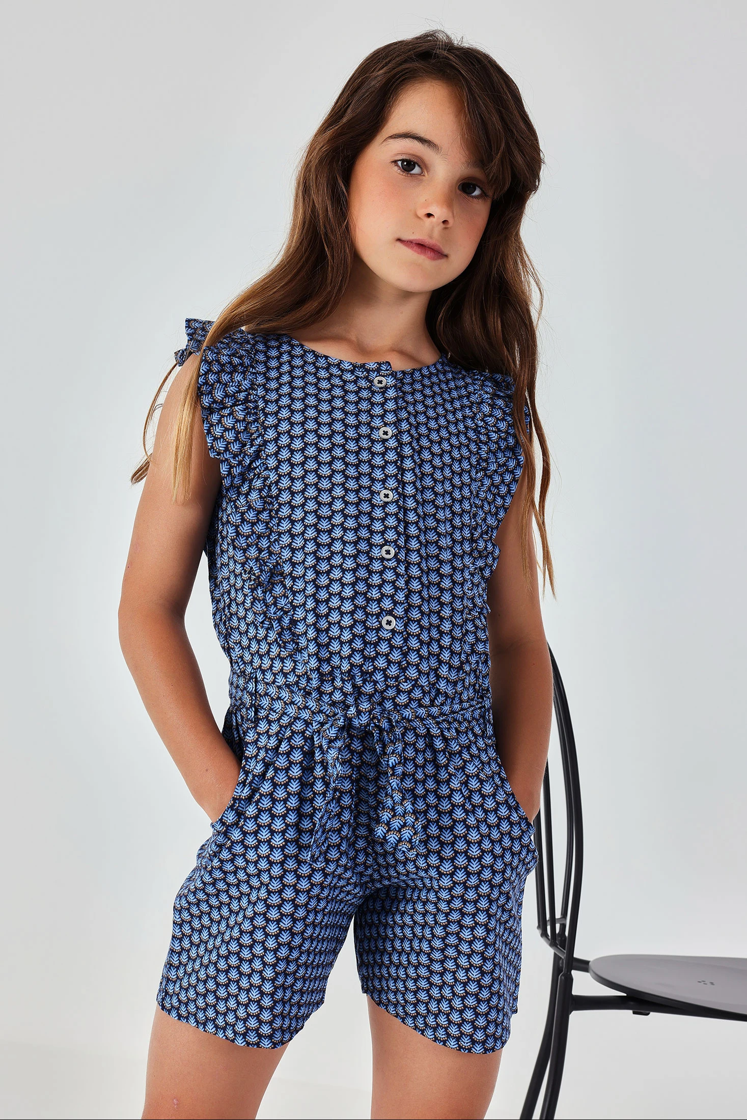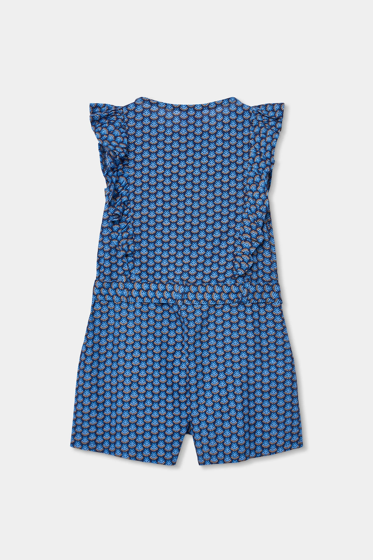 Bedruckter Einteiler für Jungen, ideal für die Frühjahrs- und Sommersaison. Hergestellt aus technischem Gewebe, bietet er Komfort und Frische. Er präsentiert ein lebhaftes blaues Design mit einem sich wiederholenden Muster, das Dynamik verleiht. Dieser Einteiler verfügt über Knöpfe auf der Vorderseite und ist ärmellos, perfekt für die heißeren Tage. Die verfügbaren Größen reichen von 12 Monaten bis 5 Jahren und garantieren eine perfekte Passform, während sie wachsen. Eine praktische und stilvolle Option, damit die Kleinen während des warmen Wetters modisch bleiben.