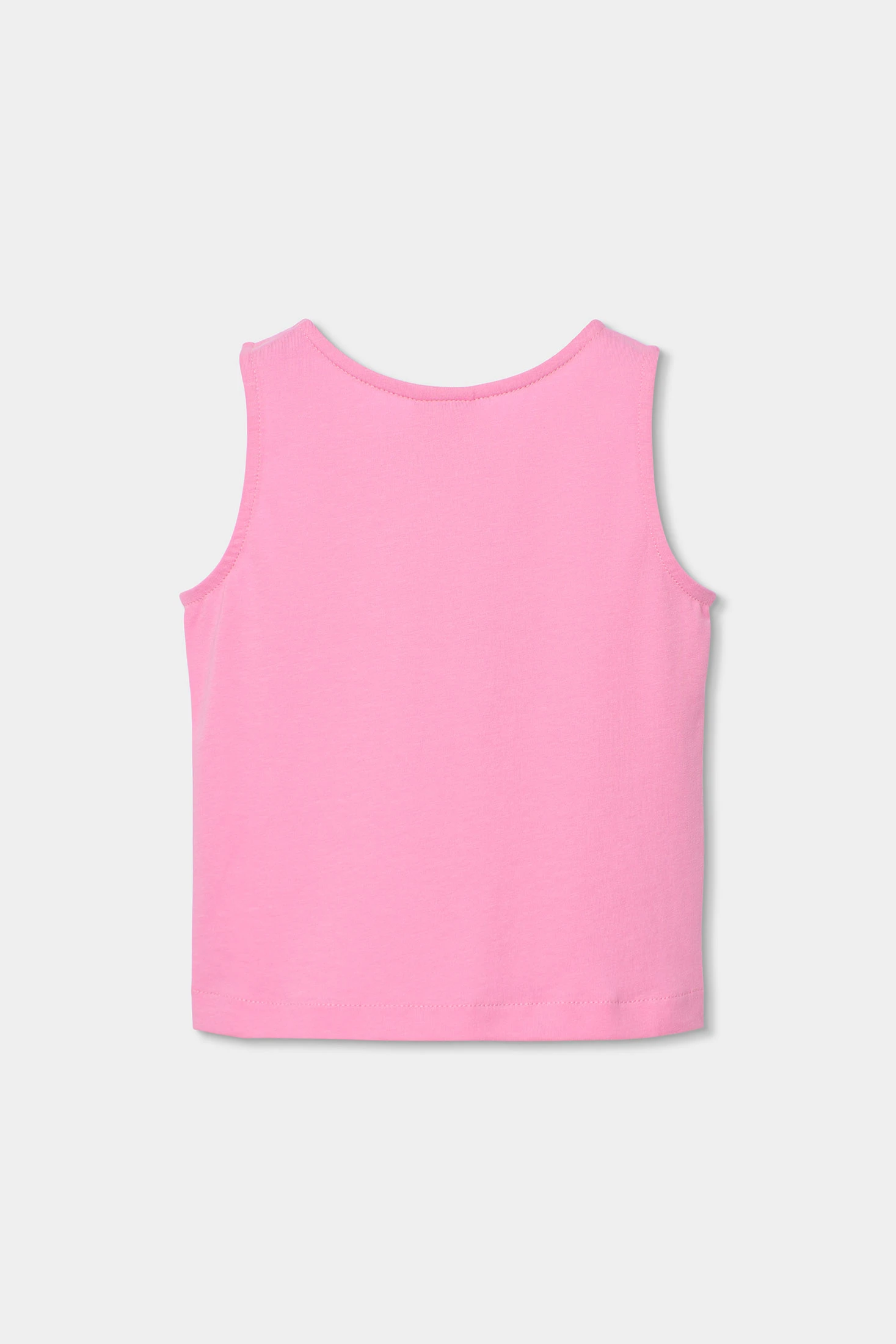Ärmelloses T-Shirt für Mädchen, gefertigt aus weicher rosa Baumwolle, ideal für die Sommersaison. Es zeigt ein attraktives Design mit lustigem Text und floralen Details, die einen fröhlichen Akzent setzen. Gedacht für Mädchen von 2 bis 14 Jahren, bietet es Komfort und Frische für den Alltag. Mit einem Rundhalsausschnitt ist es perfekt für die Kombination mit Shorts oder Röcken an sonnigen Tagen. Sein lässiger und ungezwungener Stil macht es zu einer vielseitigen und praktischen Option für den Kinderkleiderschrank.