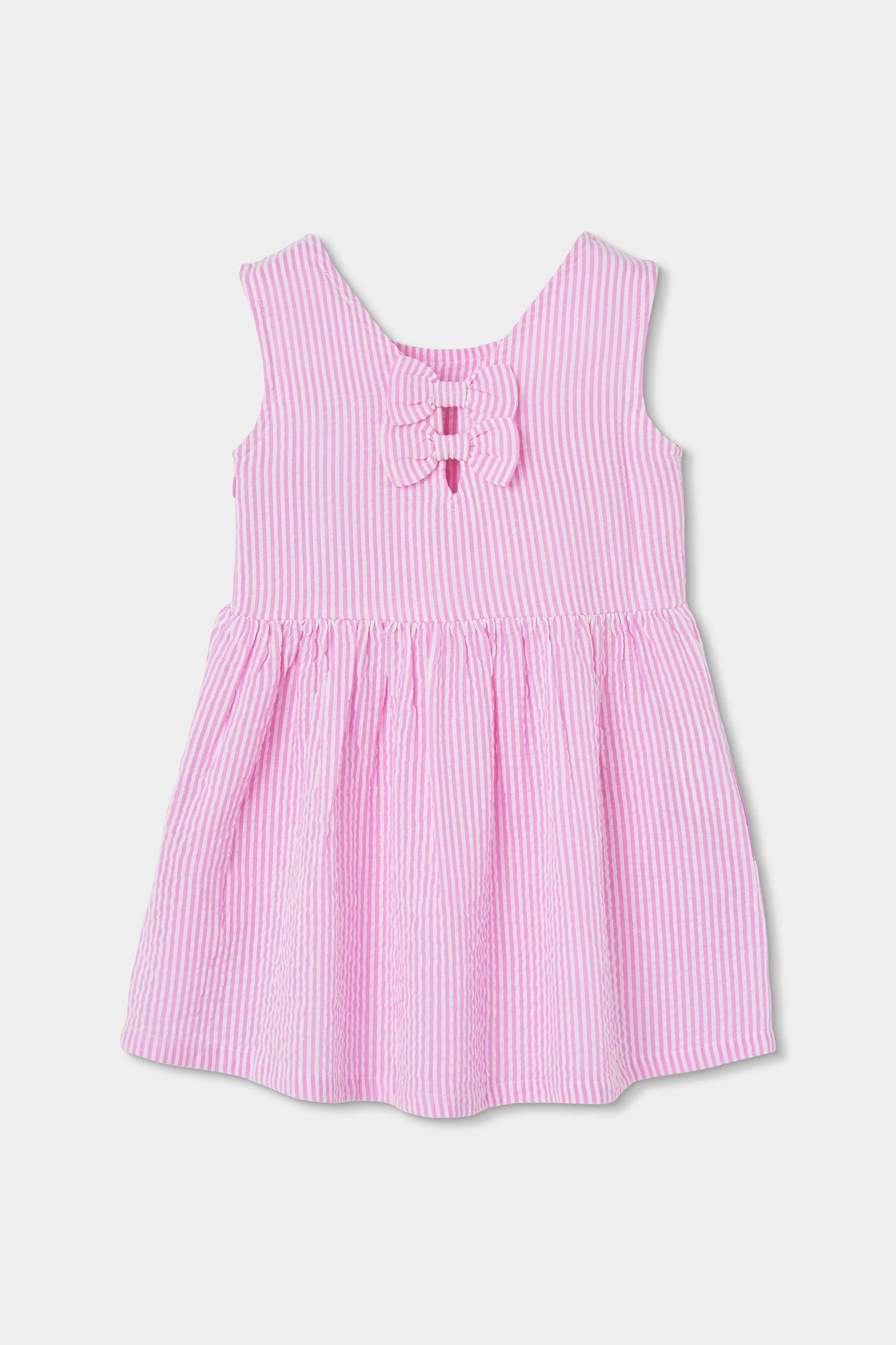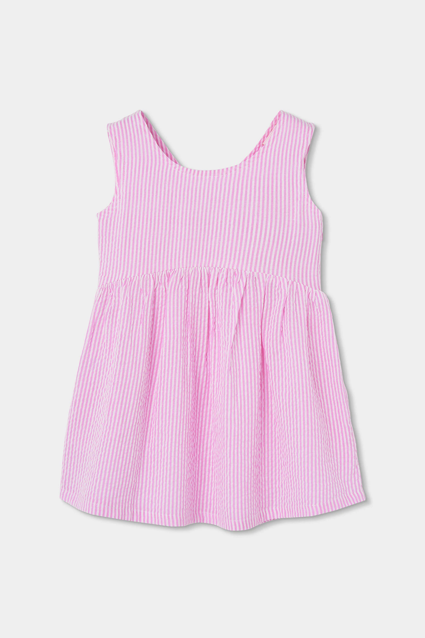 Mädchenkleid in Rosa, ideal für warme Frühjahrs- und Sommertage dank seines weichen, leichten Stoffes. Das schlichte und charmante Design bietet eine bequeme Passform, die Bewegungsfreiheit ermöglicht. Perfekt für besondere Anlässe oder den Alltag, lässt es sich leicht mit Sandalen oder Turnschuhen kombinieren. Erhältlich in den Größen von 2 bis 14 Jahren.