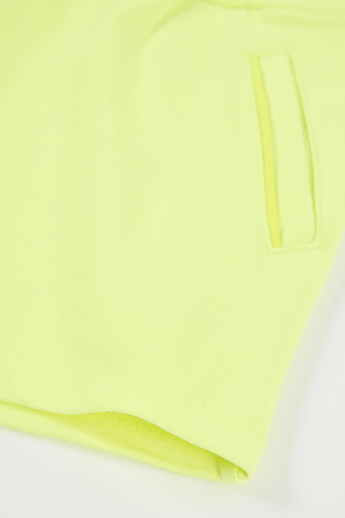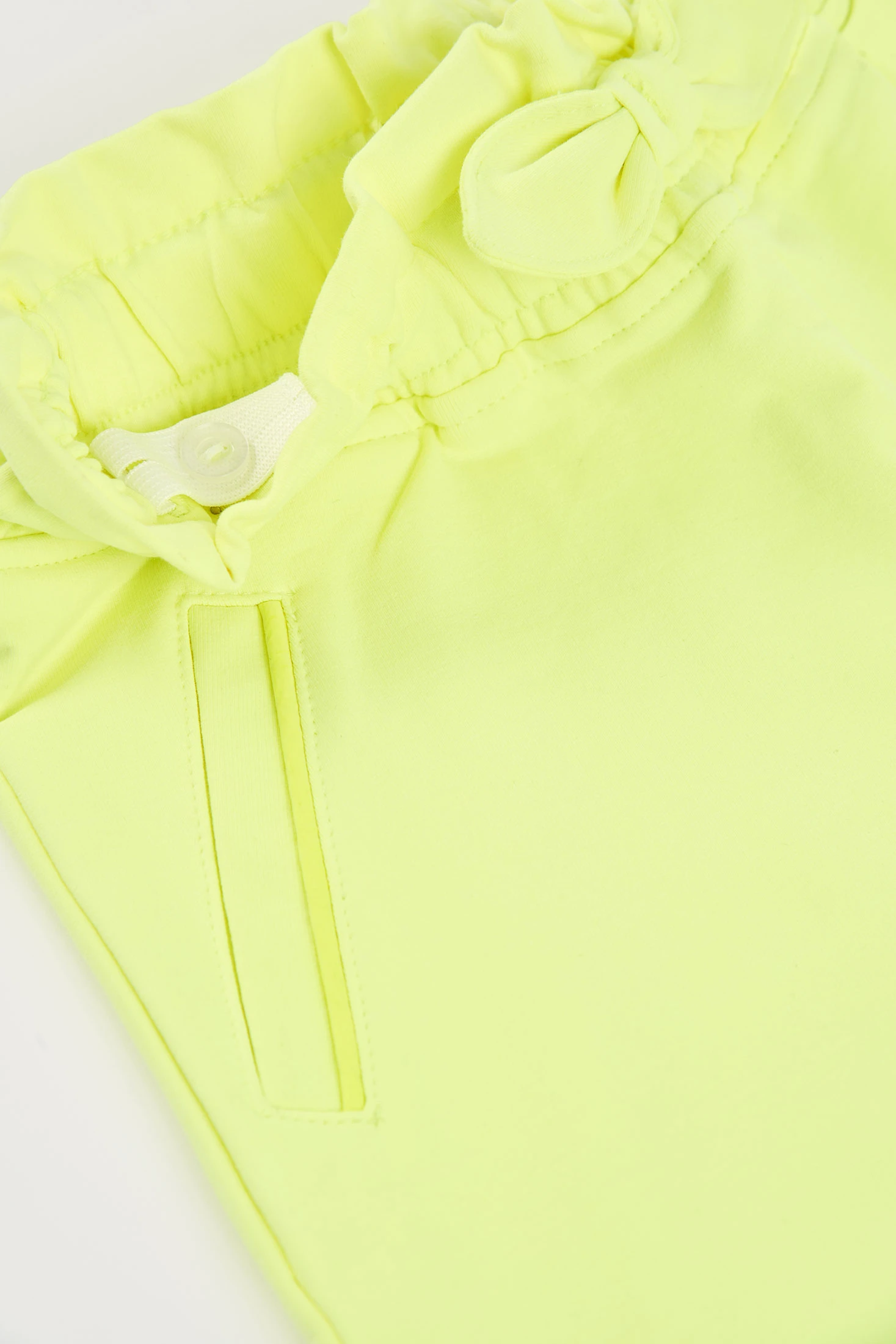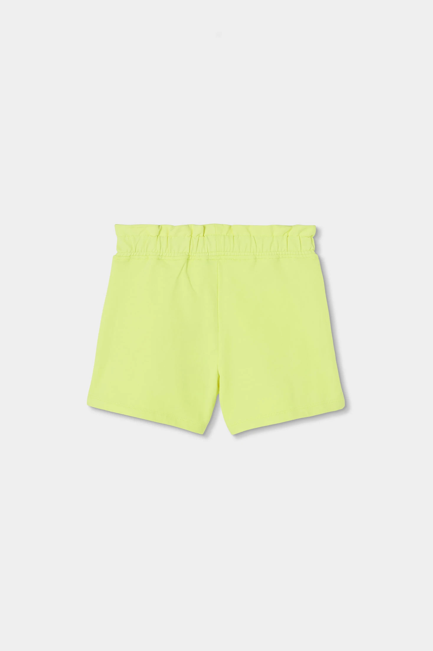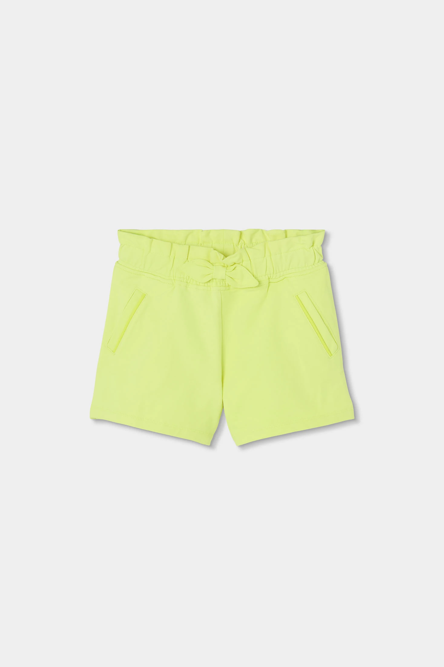 Shorts aus neon-grünem Frottee, ein bequemes und vielseitiges Kleidungsstück für Mädchen. Das Design umfasst einen elastischen Bund mit einer dekorativen Schleife, die eine sichere und bequeme Passform bietet. Aus weichem Material gefertigt, ist er ideal zum Spielen und für den täglichen Gebrauch. Die lebendige Farbe verleiht der Garderobe eine fröhliche Note. Erhältlich in Größen von 2 bis 14 Jahren, perfekt zum Kombinieren mit T-Shirts und Sweatshirts bei warmem Wetter. Sein einfacher und funktionaler Stil macht ihn zu einer praktischen Wahl für jeden ungezwungenen Anlass.