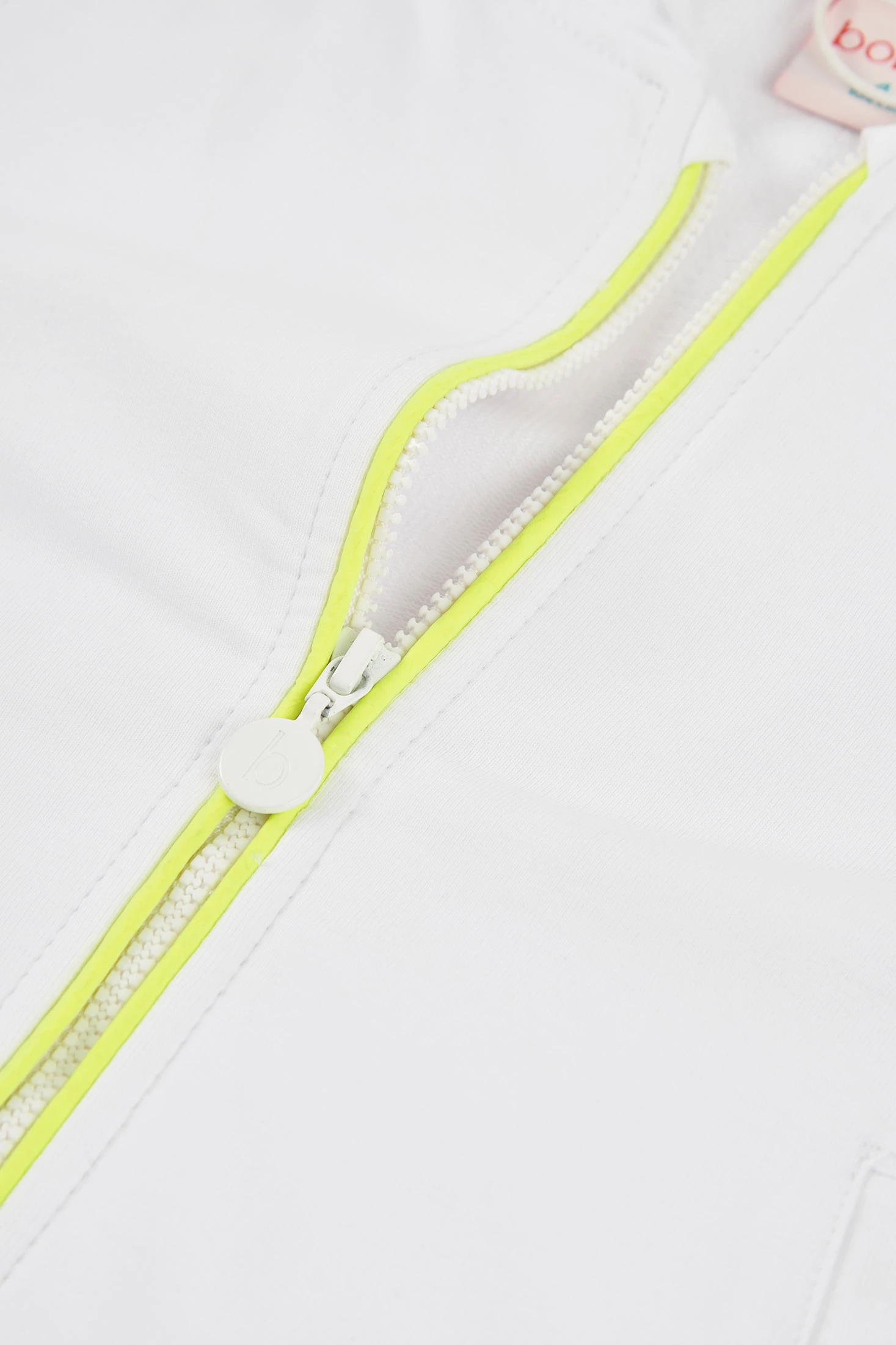 Weiße Fleecejacke für Mädchen, ideal für den Alltag. Aus einem weichen Material gefertigt, bietet sie Komfort und Wärme. Ihr Design umfasst eine Kapuze und einen Reißverschluss, der die Verwendung erleichtert. Sie verfügt über neon-grüne und silberne Streifendetails an den Bündchen und der Taille, die einen modernen Touch verleihen. Erhältlich in Größen von 2 bis 14 Jahren, passt sie sich dem Wachstum des Mädchens an. Perfekt zur Kombination mit Jeans oder Leggings, ist sie ein sehr vielseitiges und funktionales Kleidungsstück.