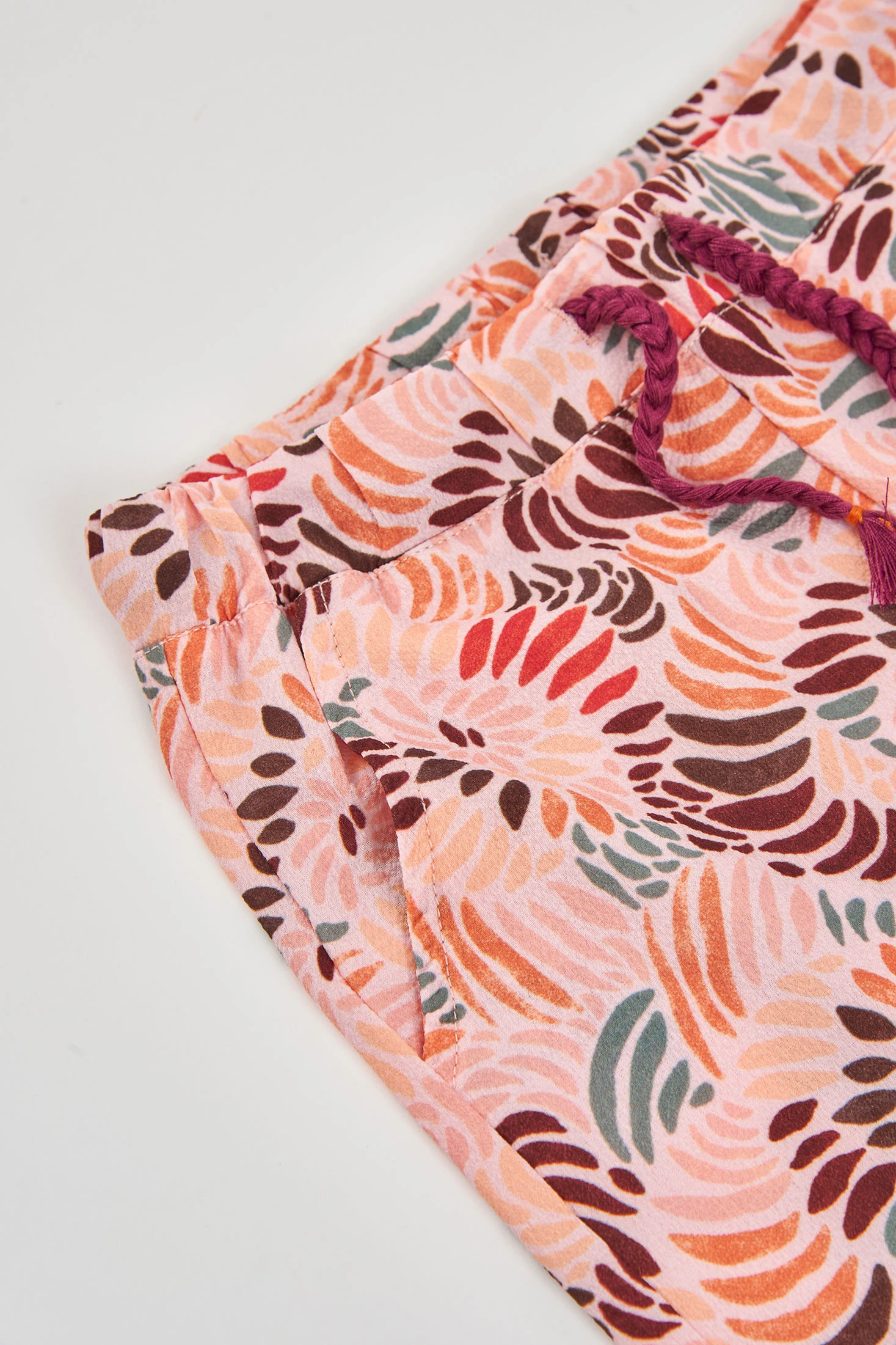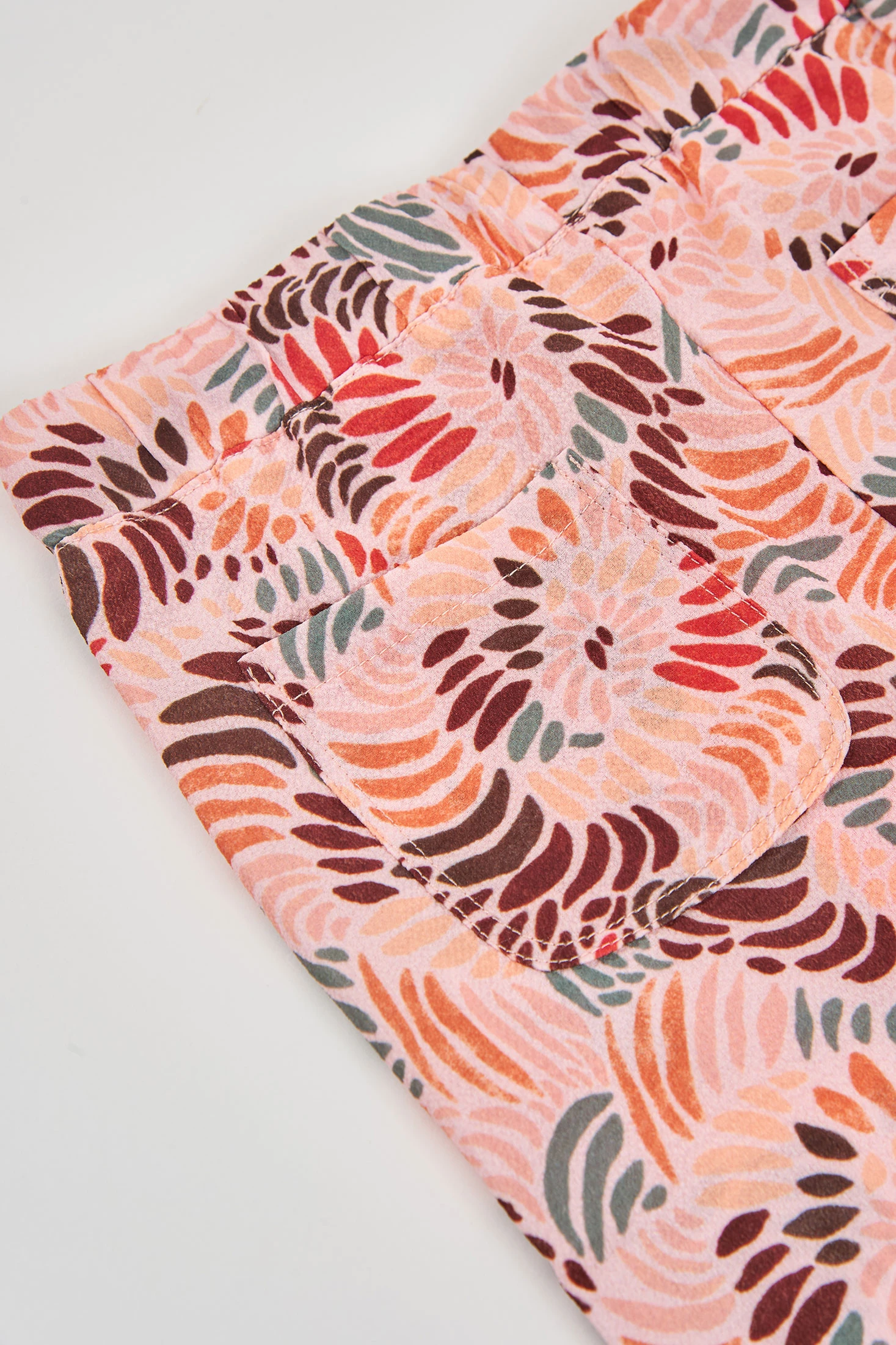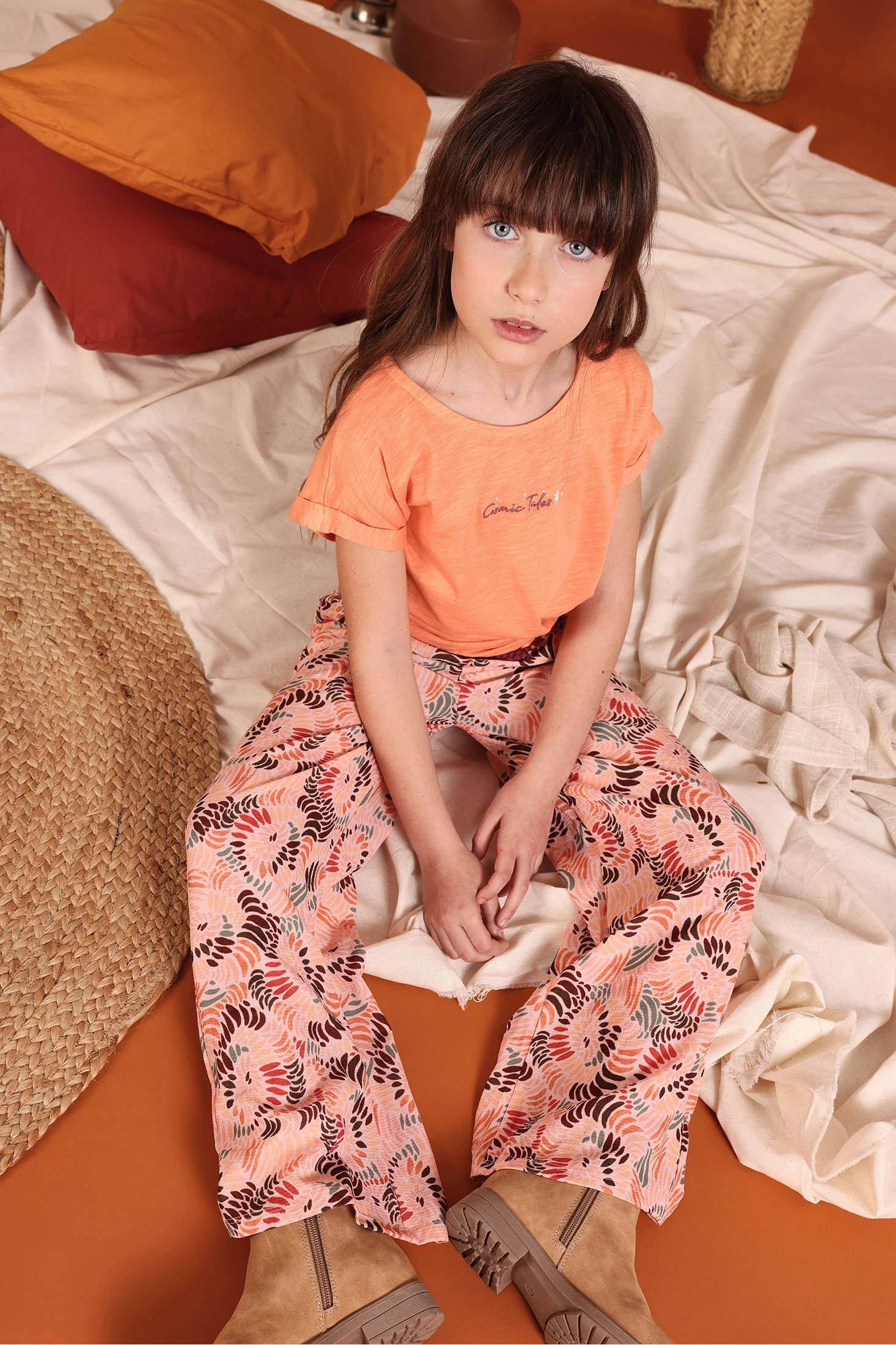 Bedruckte Hose für Mädchen, ideal um der Garderobe eine lustige Note zu verleihen. Mit einem farbenfrohen Blumendesign in Rosa- und Brauntönen ist sie perfekt, um jedem Outfit Vitalität zu verleihen. Der Kreppstoff ist weich und bietet Komfort, funktional und leicht zu tragen. Die verfügbaren Größen reichen von 2 bis 14 Jahren, sodass sie sich dem Wachstum des Mädchens anpasst. Ideal zum Kombinieren mit einfarbigen T-Shirts und Jacken, ist diese Hose eine vielseitige Wahl für verschiedene Anlässe.