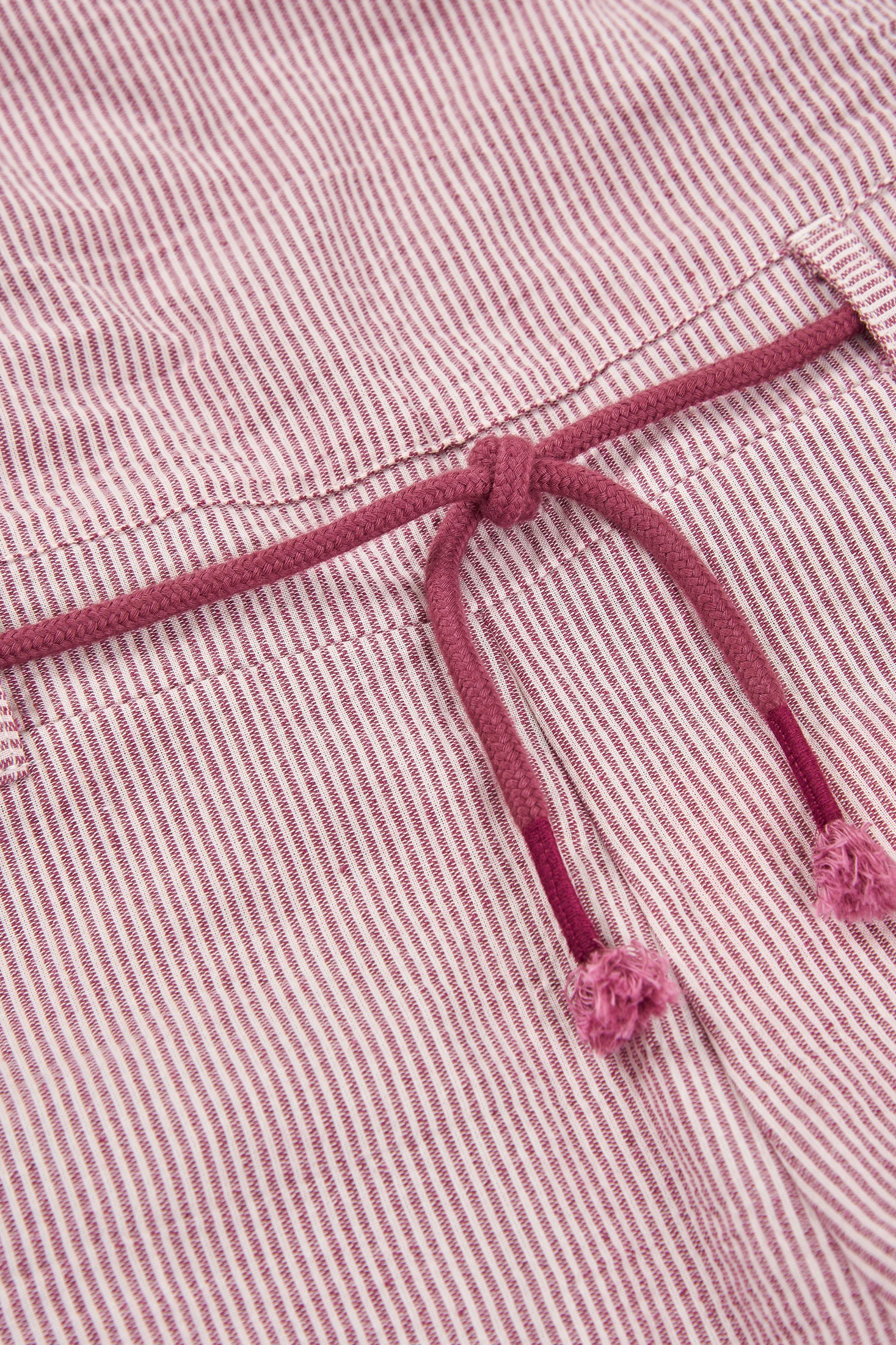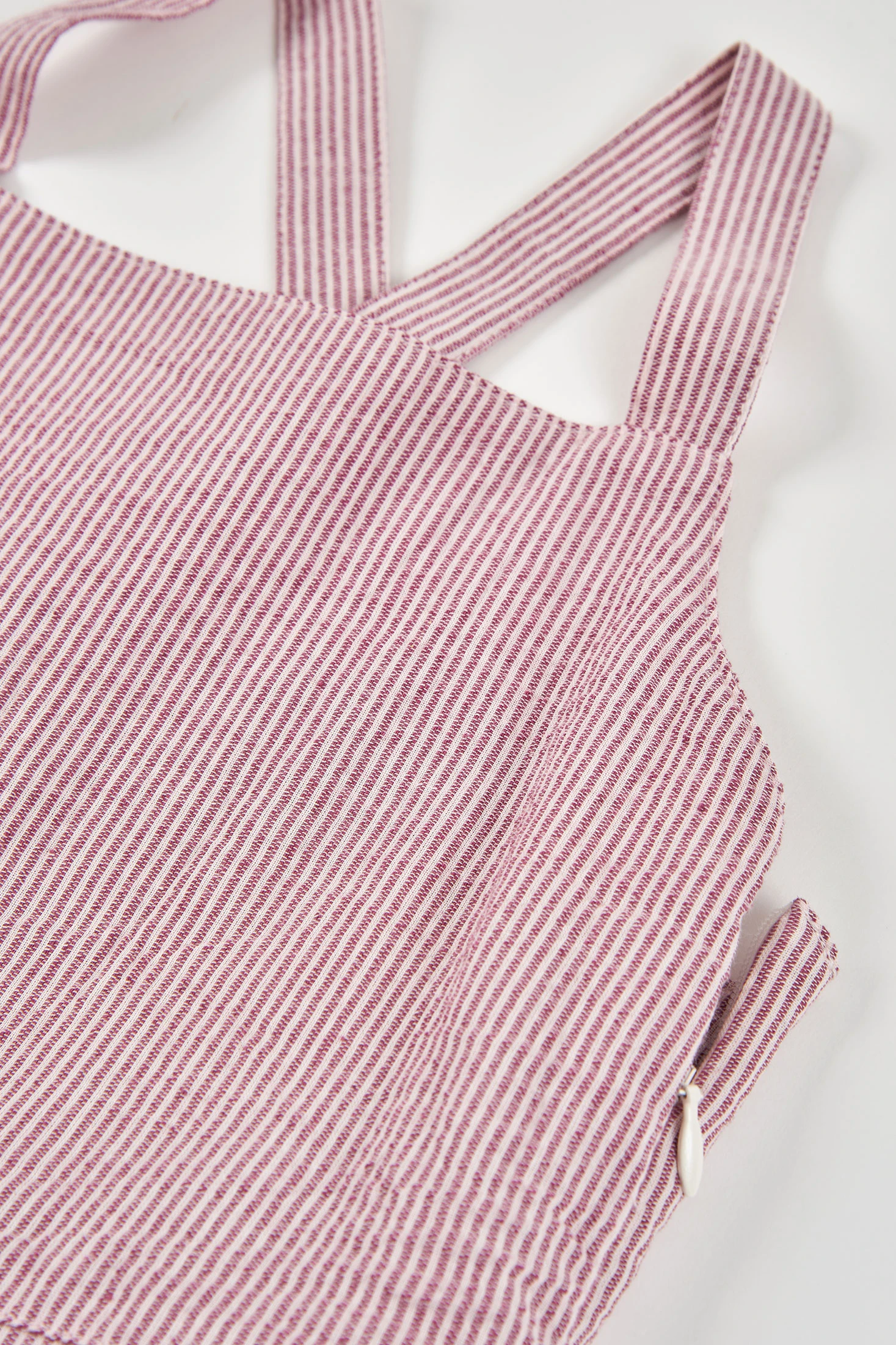 Gestreifter Seersucker-Overall aus Popeline, ideal für Mädchen, erhältlich in Größen von 2 bis 14 Jahren. Das Design weist ein zartes Muster mit vertikalen Streifen in Rosa- und Naturtönen auf und bietet einen frischen und modernen Stil. Hergestellt aus leichtem Popeline-Material, garantiert er Komfort und Atmungsaktivität. Die träger in ''V''-Form am Rücken und ein verstellbarer Kordelzug in der Taille sorgen für Funktionalität und perfekte Passform. Dieser Overall ist perfekt für warme Tage und kombiniert Stil und Komfort auf außergewöhnliche Weise.