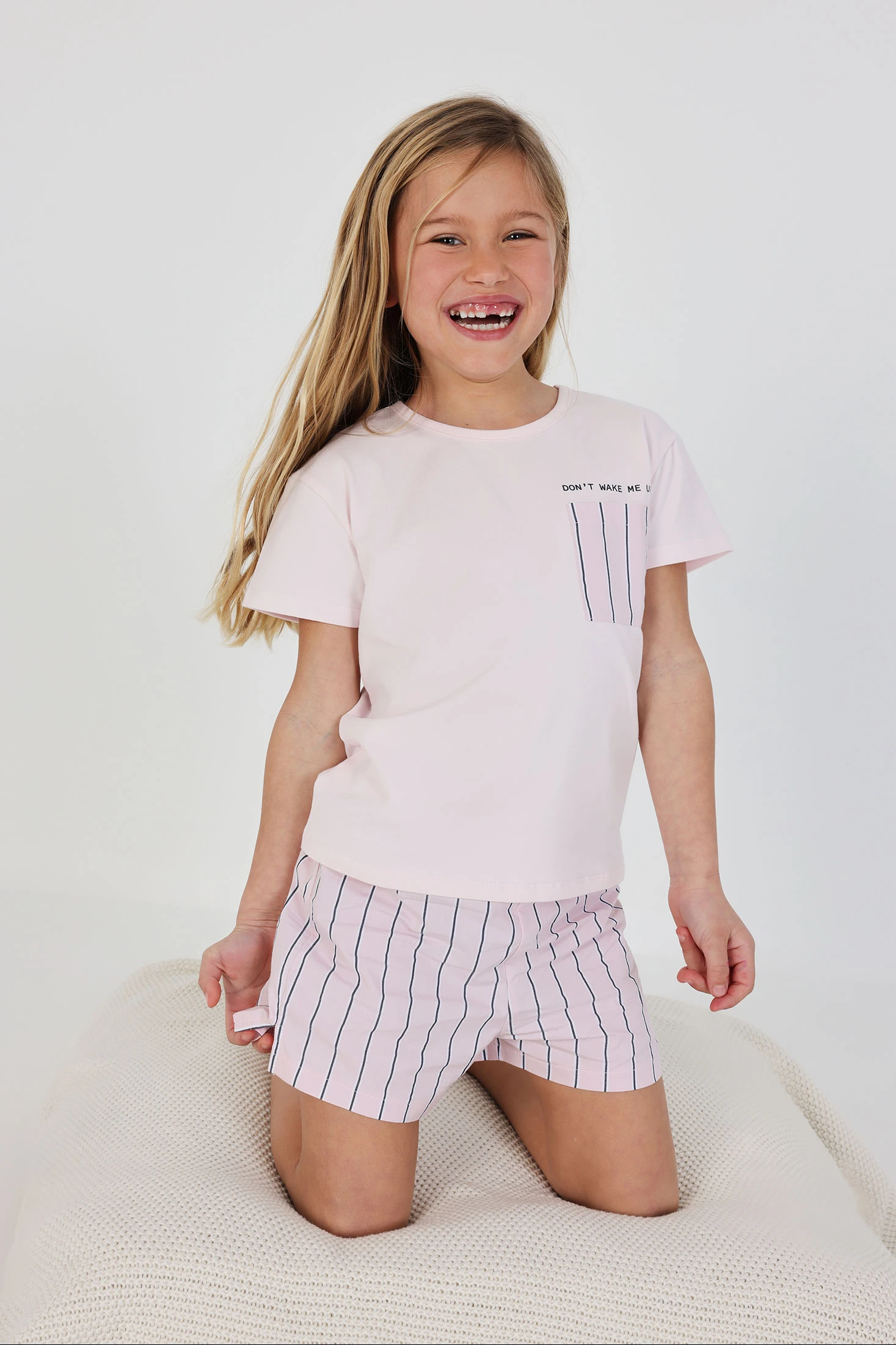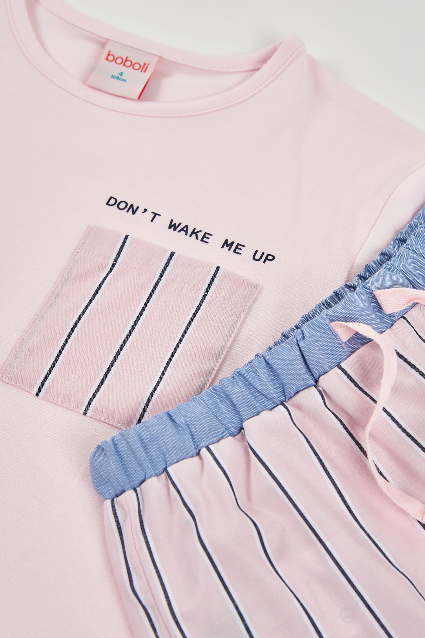 Mädchen Schlafanzug rosa Baumwolle mit schwarzen Streifen