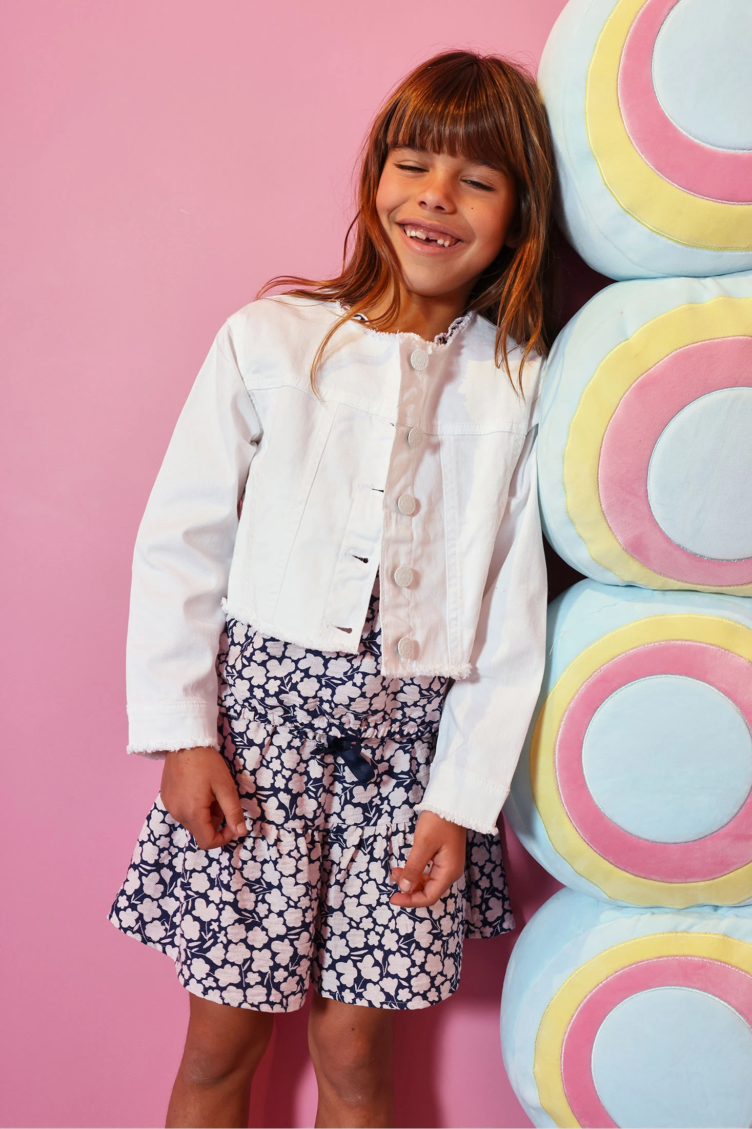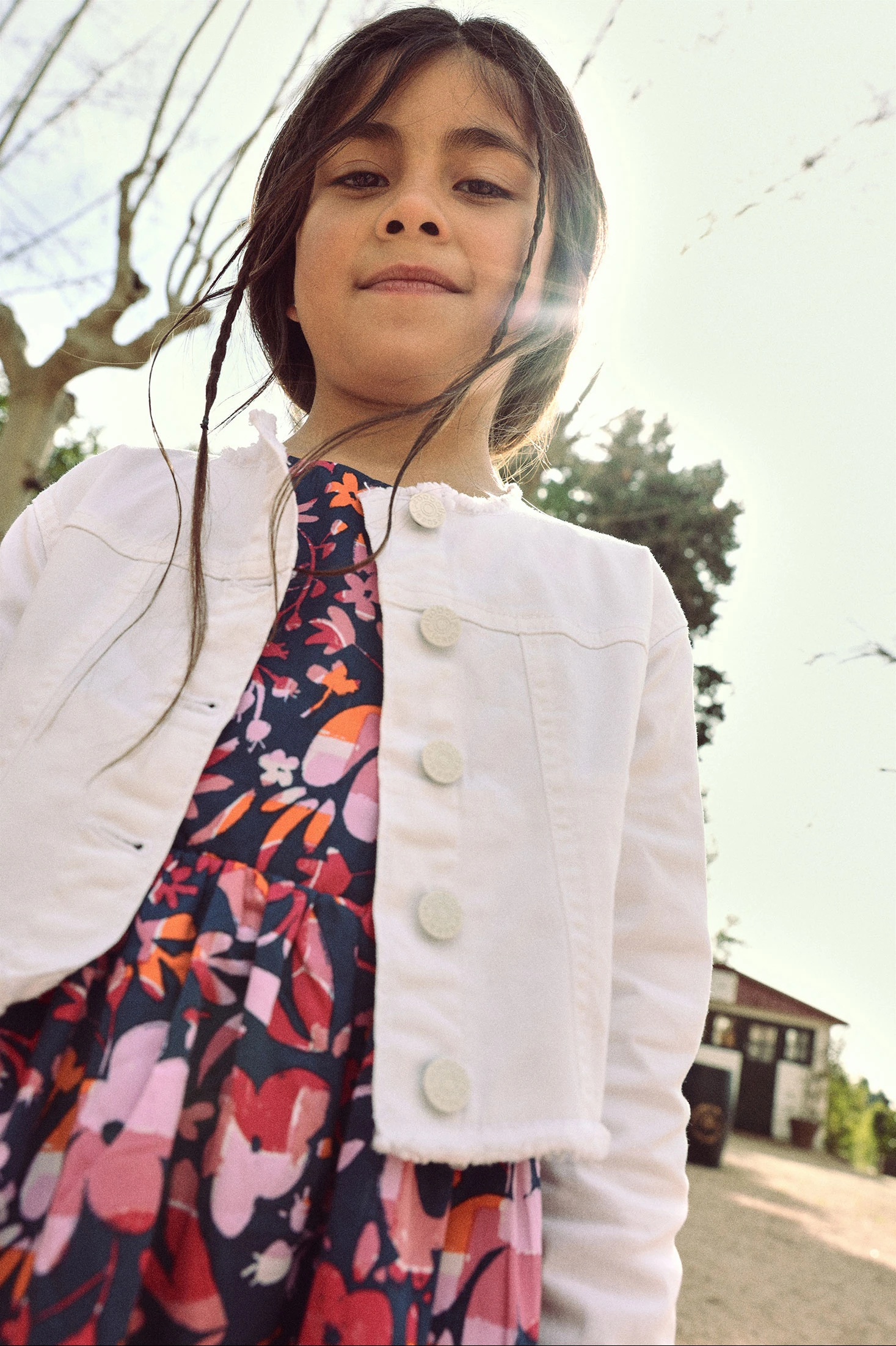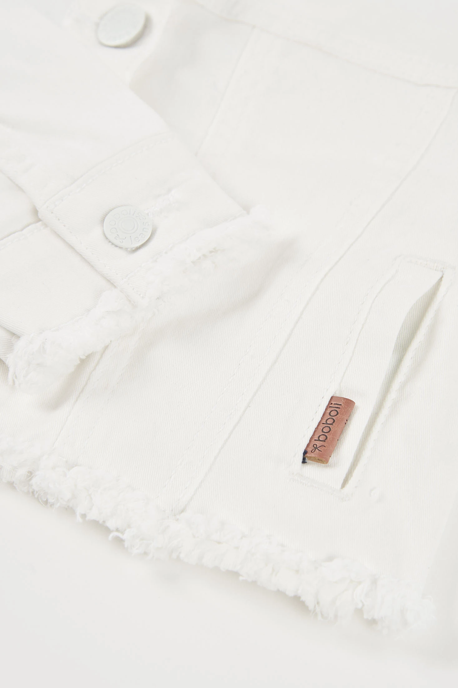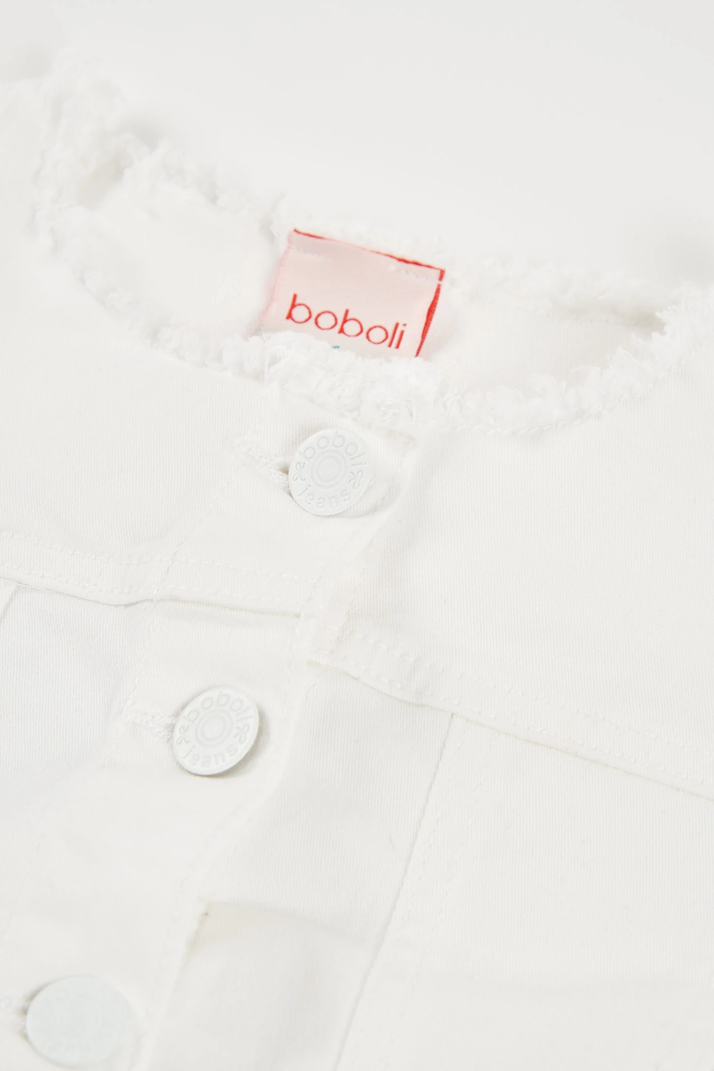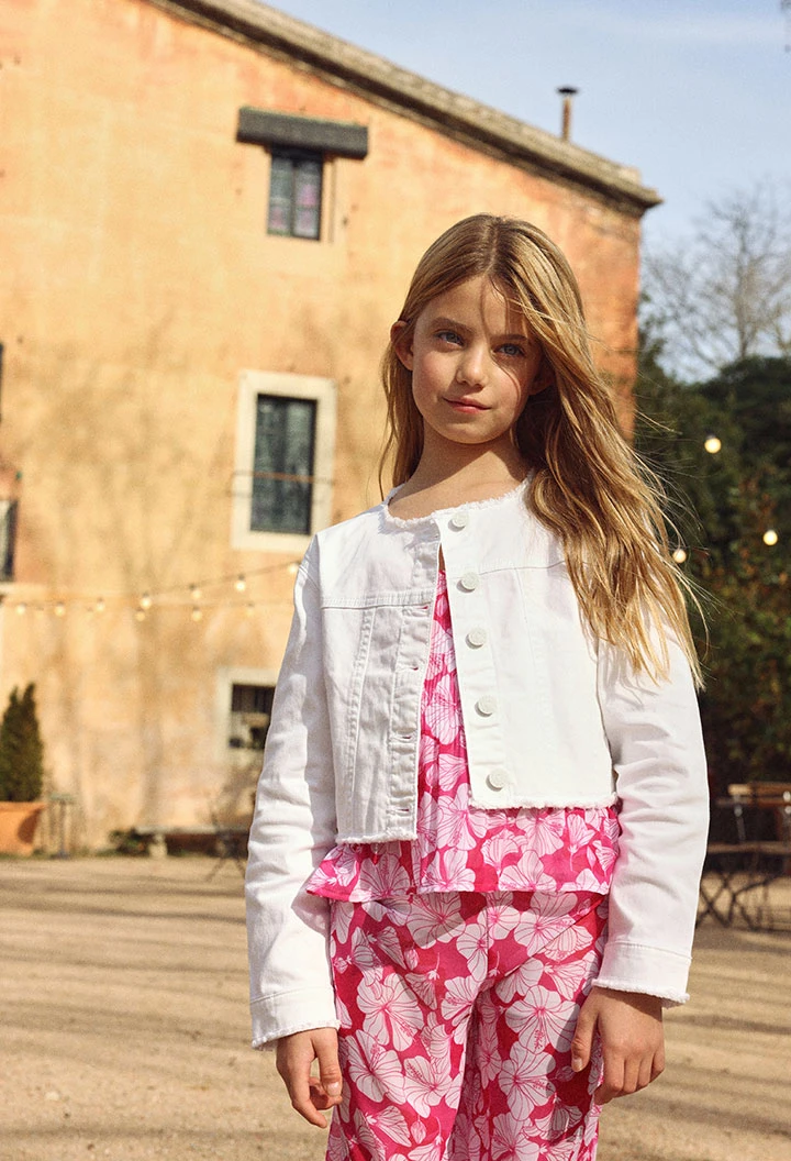 Weiße Denim-Jacke für Mädchen, ideal für jede Jahreszeit. Sie bietet einen klassischen Stil mit Rundhalsausschnitt und Frontknöpfen und verbindet Stil mit Funktionalität. Hergestellt aus Denim-Material, ist sie widerstandsfähig und bequem. Geeignet für Mädchen zwischen 12 Monaten und 14 Jahren. Perfekt zu kombinieren mit Kleidern, Röcken oder Hosen und verleiht jedem Outfit einen lässigen und modernen Touch. Ihre Vielseitigkeit macht sie zu einem unverzichtbaren Kleidungsstück in der Kindergarderobe.