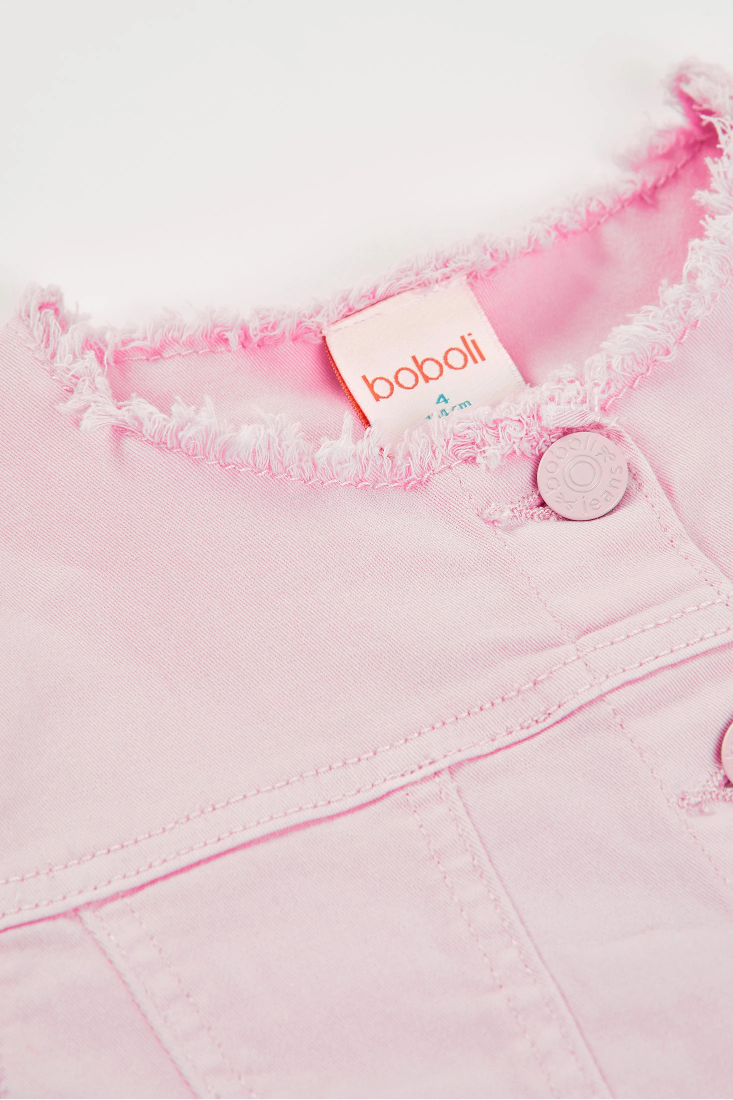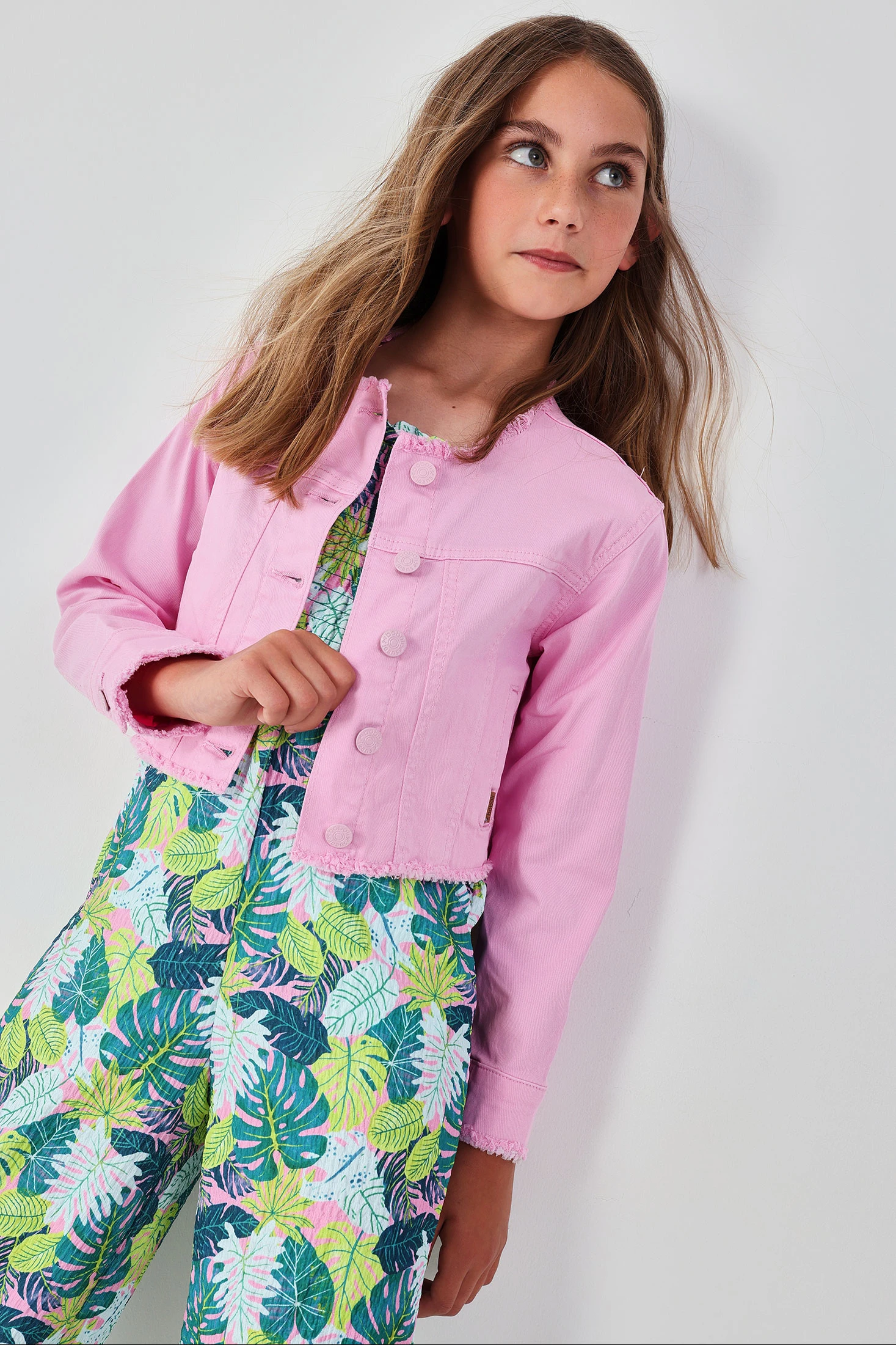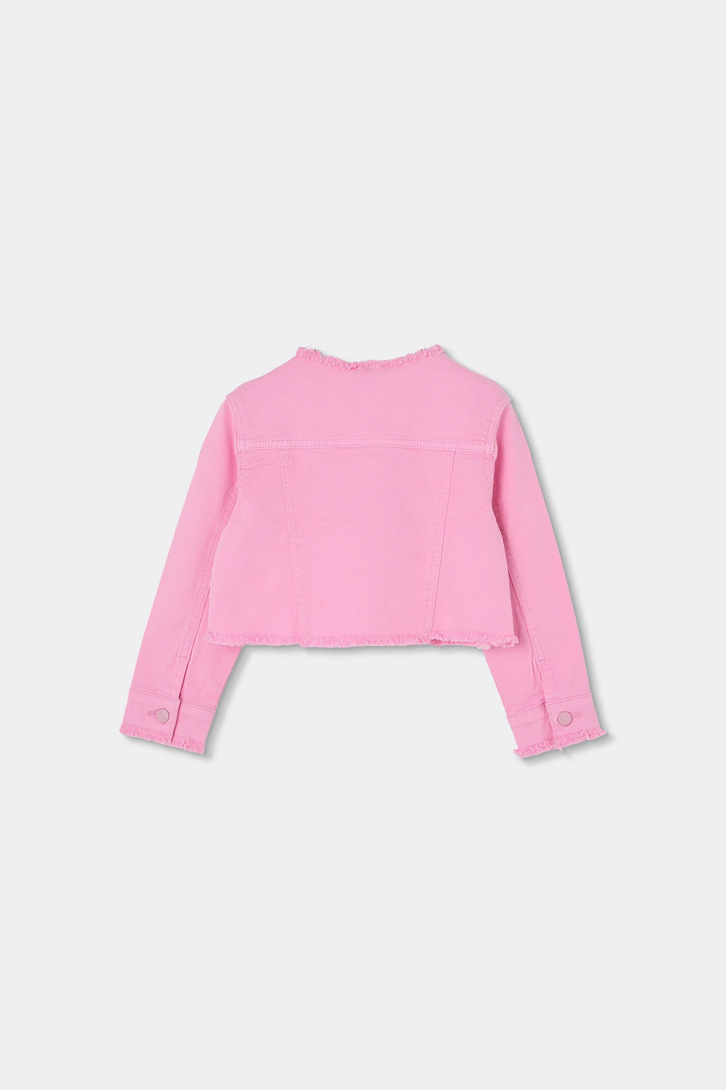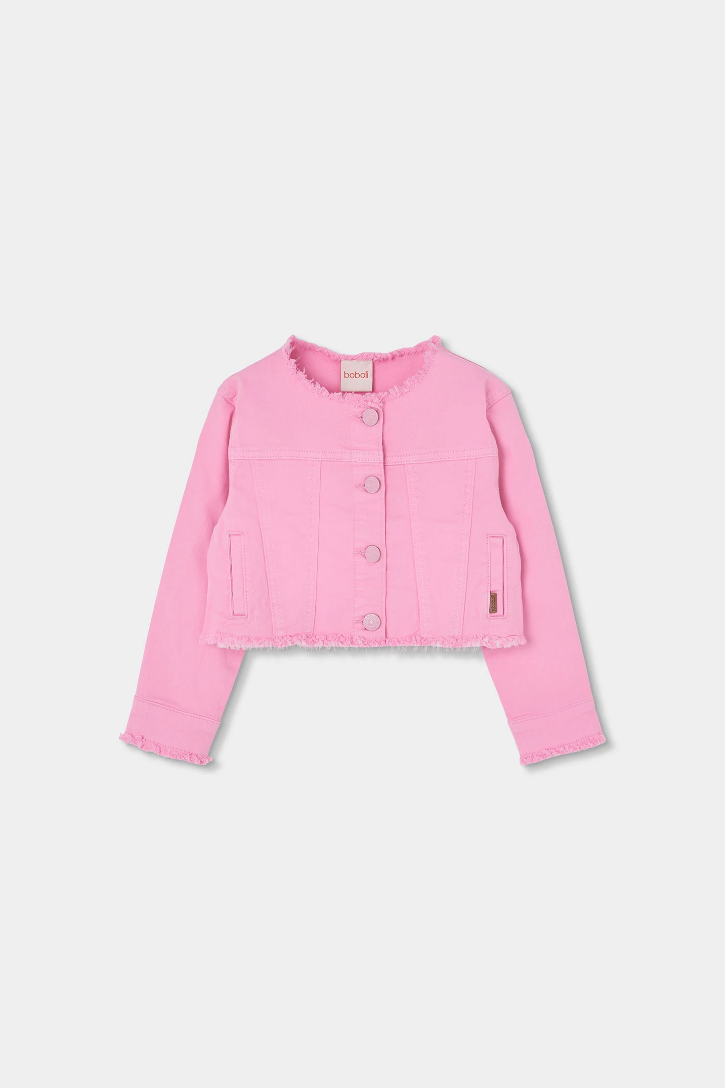 Pinke Denim-Jacke für Mädchen, ideal um jedem Outfit einen Farbtupfer zu verleihen. Aus robustem Stoff gefertigt, bietet sie Komfort und Stil. Ihr Design umfasst einen Knopfverschluss und ausgefranste Details, die ihr eine moderne Ausstrahlung verleihen. Geeignet für Altersgruppen von 12 Monaten bis 14 Jahren ist dieses Kleidungsstück perfekt für zwanglose Anlässe oder fröhliche Spaziergänge. Sie lässt sich leicht mit Jeans oder Röcken für einen lässigen und zeitgemäßen Look kombinieren.