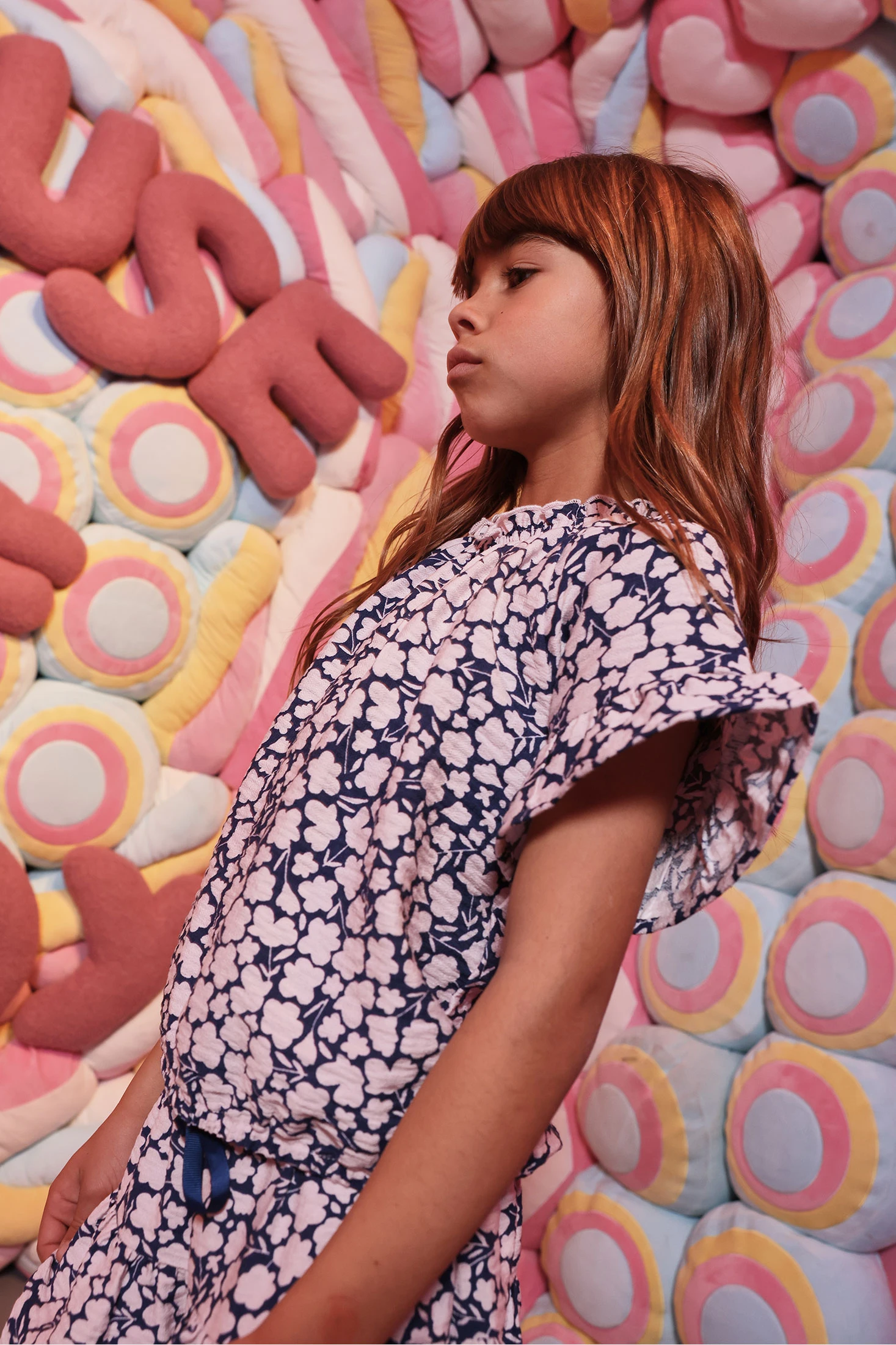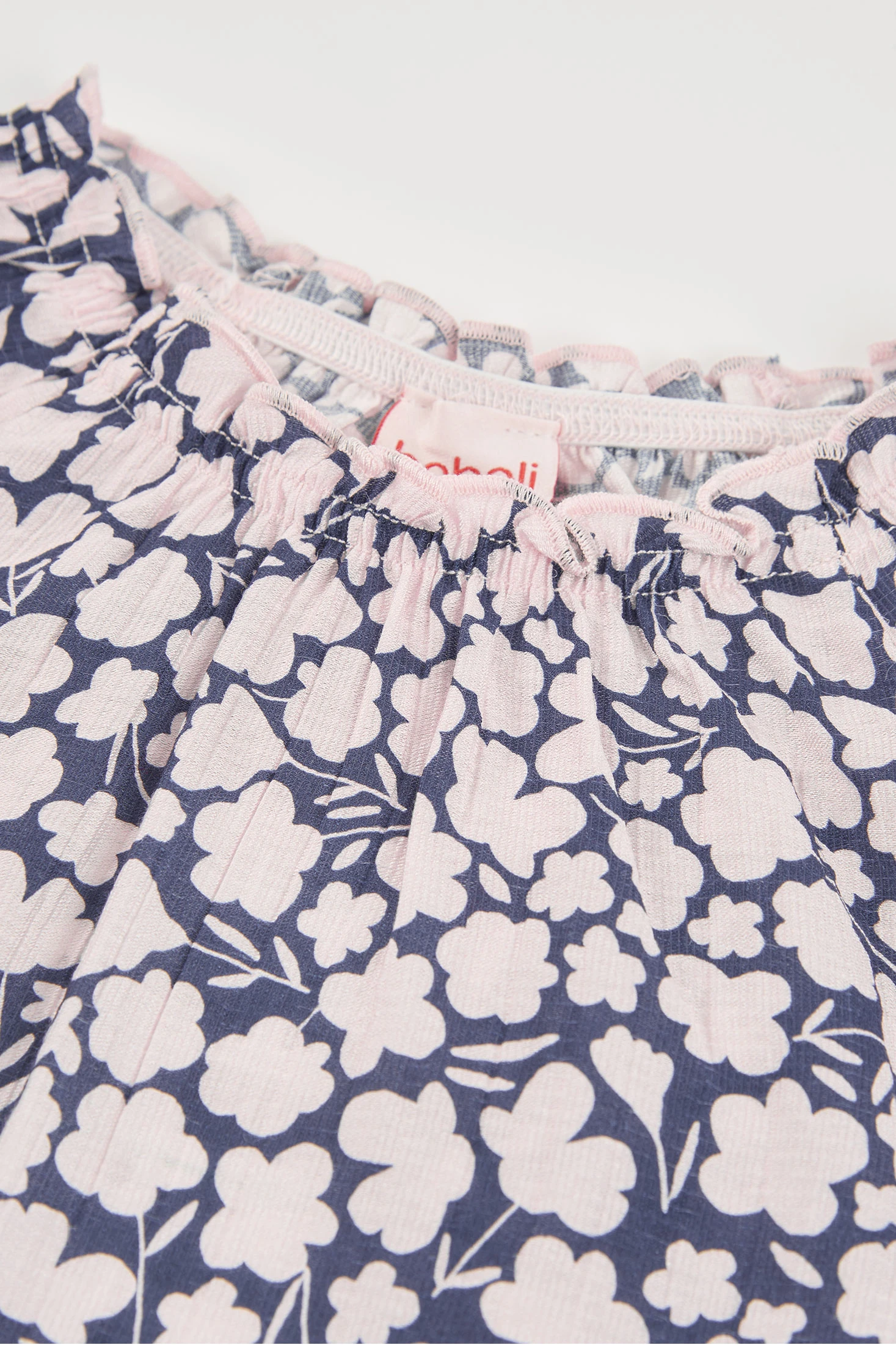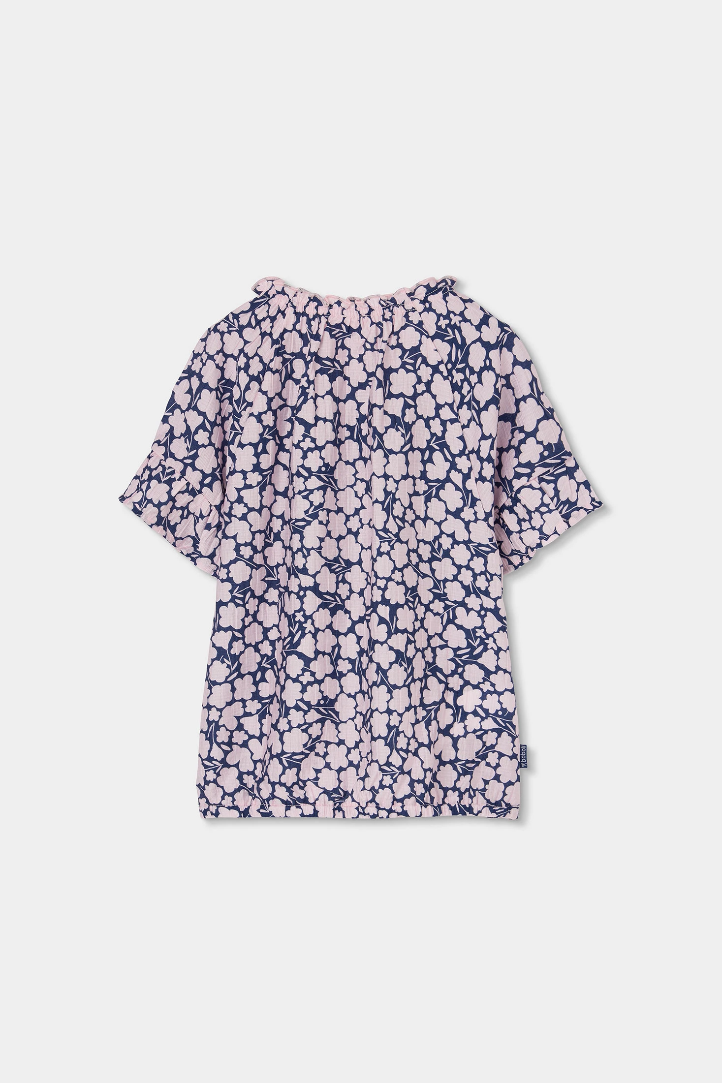 Mädchenbluse mit einem bezaubernden Blumenmuster in Rosatönen auf marineblauem Hintergrund, ideal, um jedem Outfit einen frischen Touch zu verleihen. Hergestellt aus einem weichen und leichten Material, gewährleistet sie den ganzen Tag über Komfort. Für Kinder im Alter von 12 Monaten bis 10 Jahren entworfen, ist sie perfekt für legere Anlässe oder besondere Ereignisse. Ihr lockerer Schnitt und der Rundhalsausschnitt ermöglichen Bewegungsfreiheit und eine einfache Kombination mit Hosen oder Röcken. Eine vielseitige und stilvolle Wahl, um die Kinderkleidung zu bereichern.