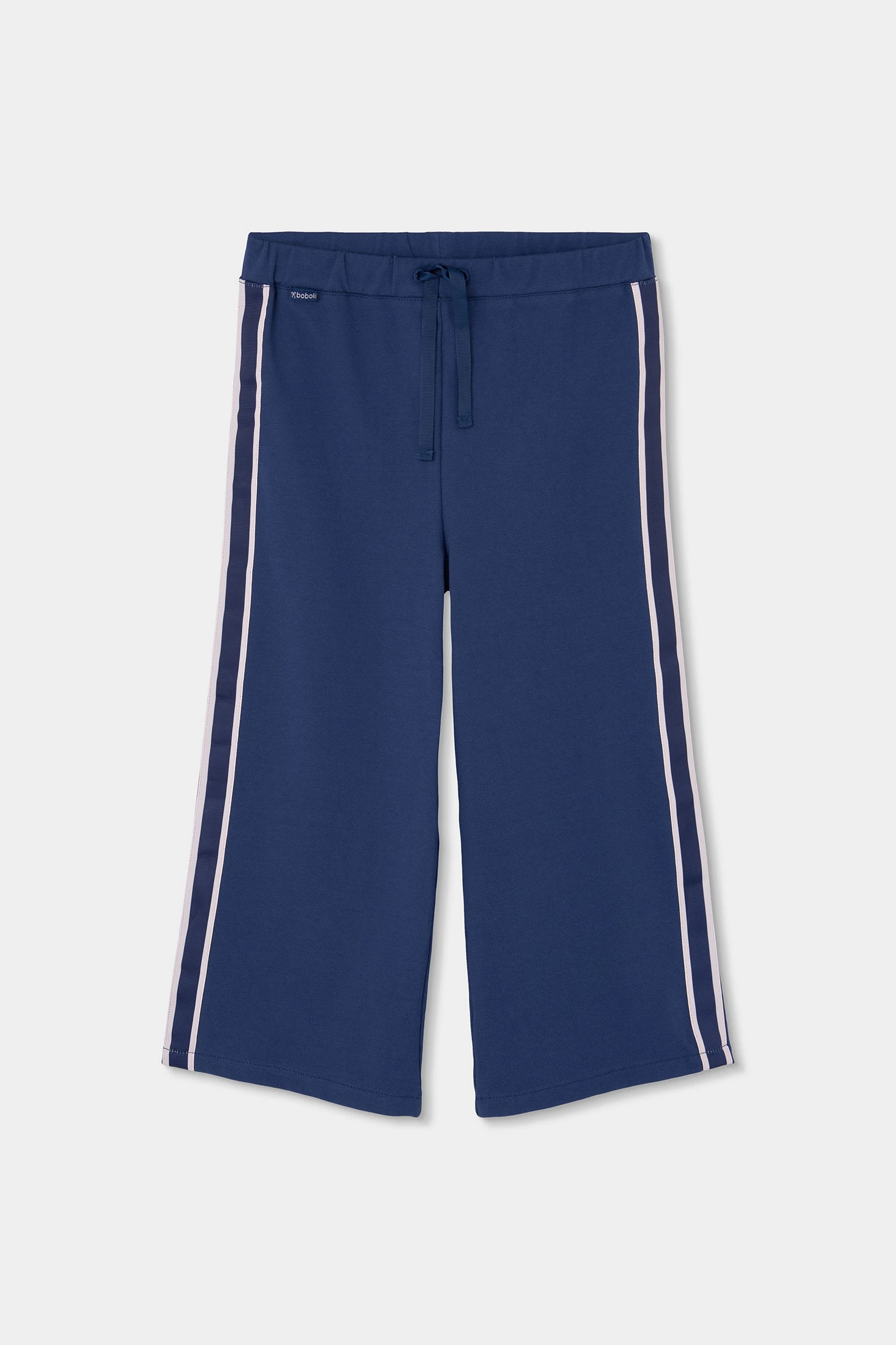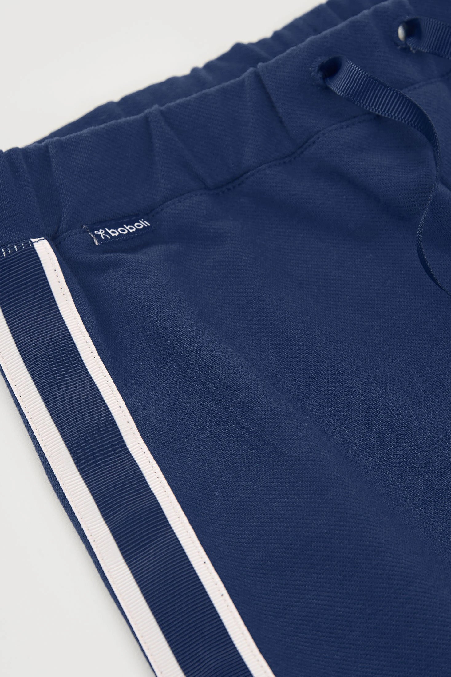 Blaue Hose für Mädchen, perfekt für einen sportlichen und bequemen Stil. Hergestellt aus weichem und strapazierfähigem Material, bietet sie ein schlichtes Design mit seitlichen Kontraststreifen, die einen modernen Touch verleihen. Ihr verstellbarer Bund sorgt für einen guten Sitz und bietet gleichzeitig Bewegungsfreiheit. Erhältlich in Größen von 12 Monaten bis 10 Jahren. Ideal zum Kombinieren mit T-Shirts oder Sweatshirts, macht die tiefblaue Farbe sie vielseitig für verschiedene Anlässe.