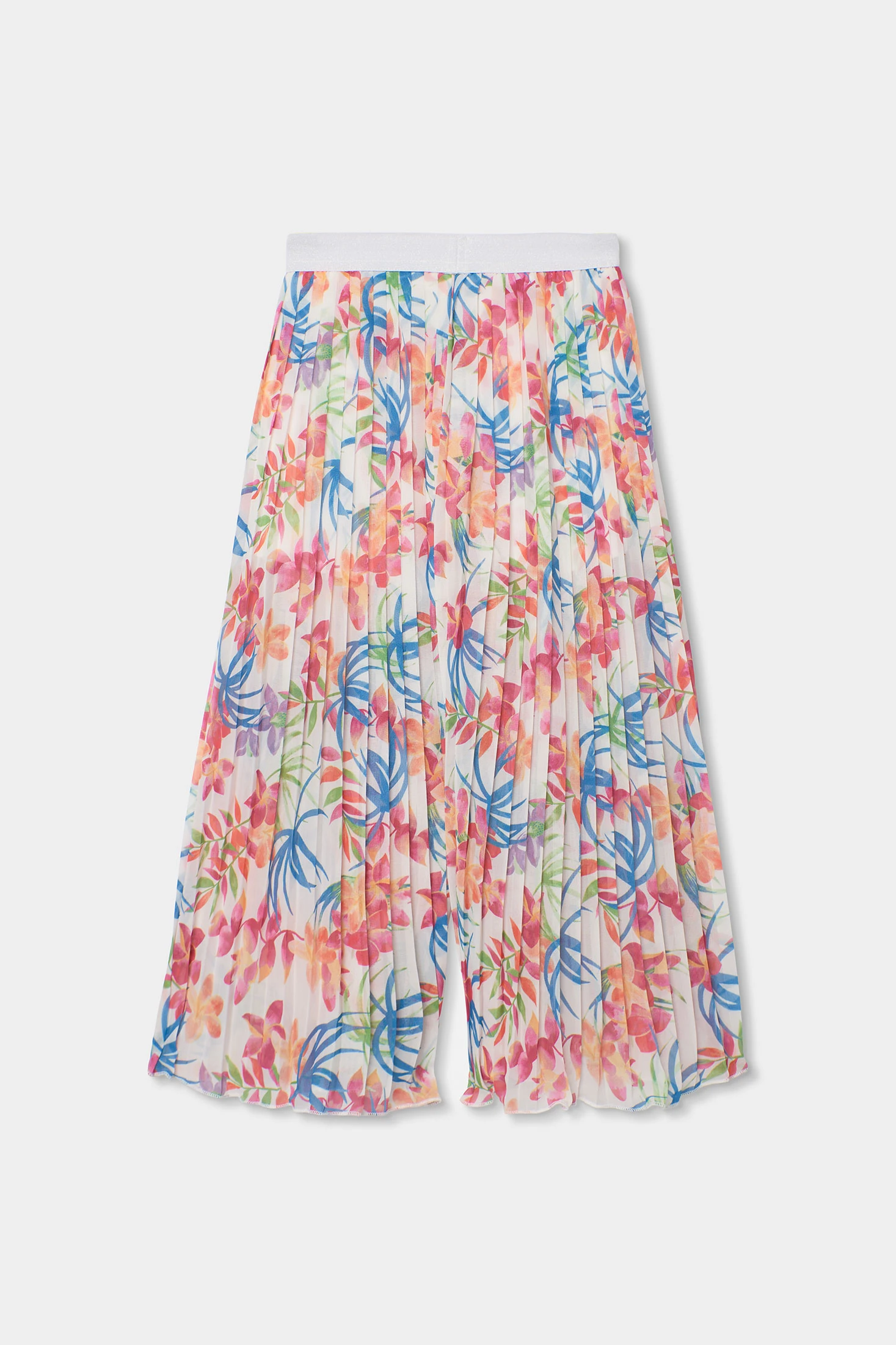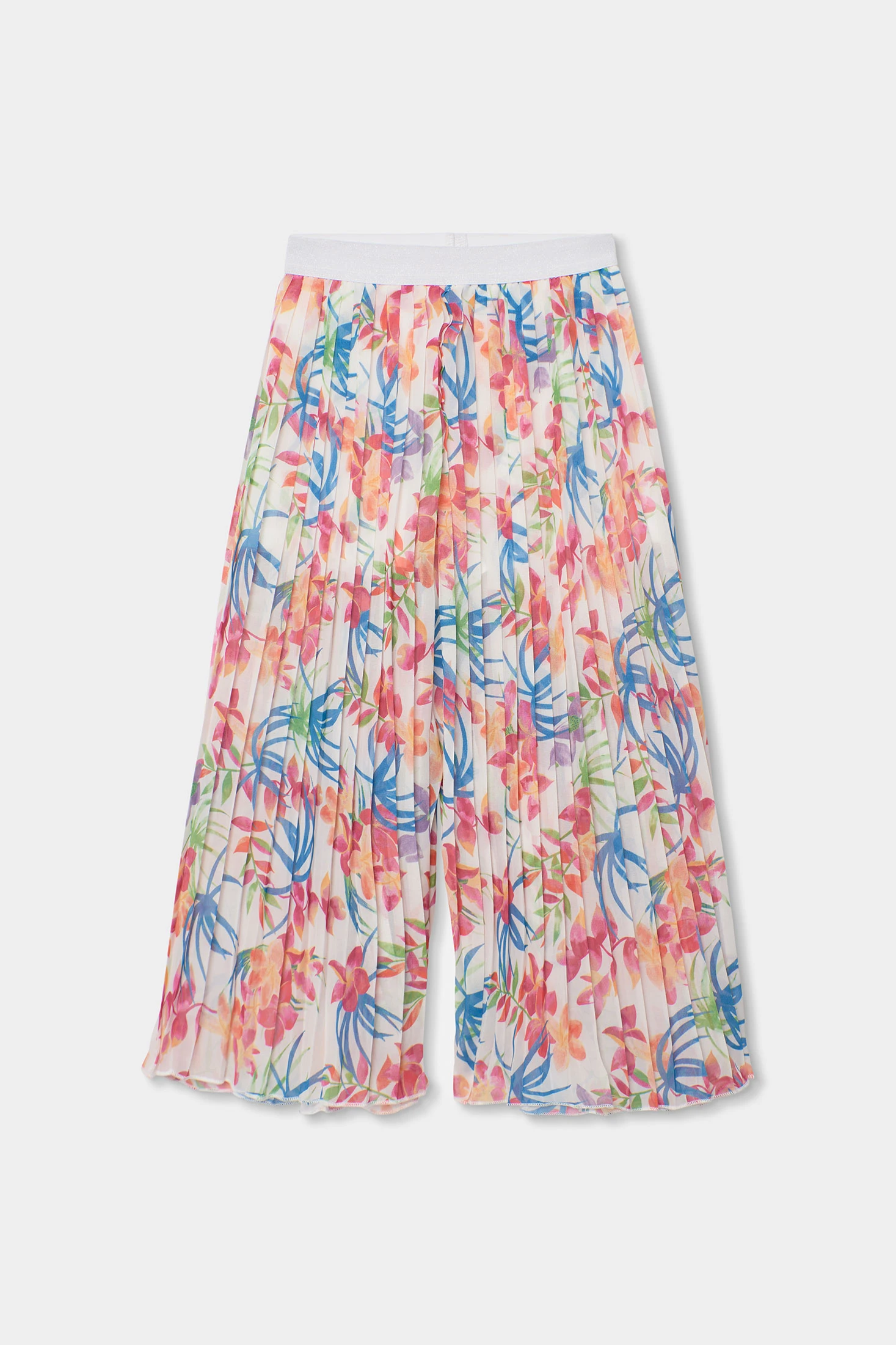 Plissierte Chiffonhose mit Print für Mädchen, ideal für die Frühlings- und Sommersaison. Das plissierte Chiffonmaterial macht sie leicht und luftig, perfekt für warme Tage. Sie präsentiert einen farbenfrohen Blumenprint in lebendigen Tönen, der dem Outfit eine fröhliche Note verleiht. Erhältlich in Größen von 2 bis 14 Jahren. Das fließende, lässige Design bietet Komfort und Stil und macht diese Hose zu einem vielseitigen Kleidungsstück, das sich gut mit Basic-T-Shirts oder Blusen für einen lässigen und schicken Look kombinieren lässt.