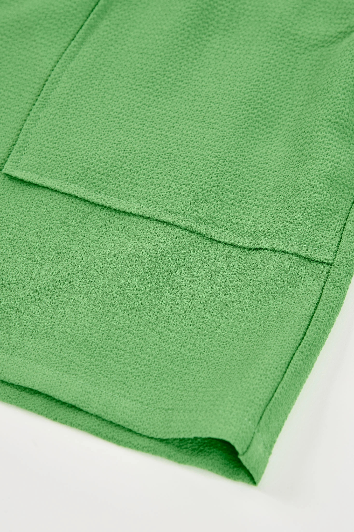 Grüne Bermudashorts für Mädchen, ideal für warme Tage, aus weichem und leichtem Kreppstoff gefertigt, bieten den ganzen Tag über Komfort. Das Design umfasst eine dekorative Schleife an der Taille und Vordertaschen, was einen funktionellen Stil verleiht. Erhältlich in Größen von 2 bis 14 Jahren, passen sie sich dem Wachstum der Mädchen an. Ihre lebendige Farbe macht sie perfekt zur Kombination mit bedruckten Blusen oder einfachen T-Shirts und schafft frische, sommerliche Looks. Ein vielseitiges und praktisches Kleidungsstück für die Kindergarderobe.