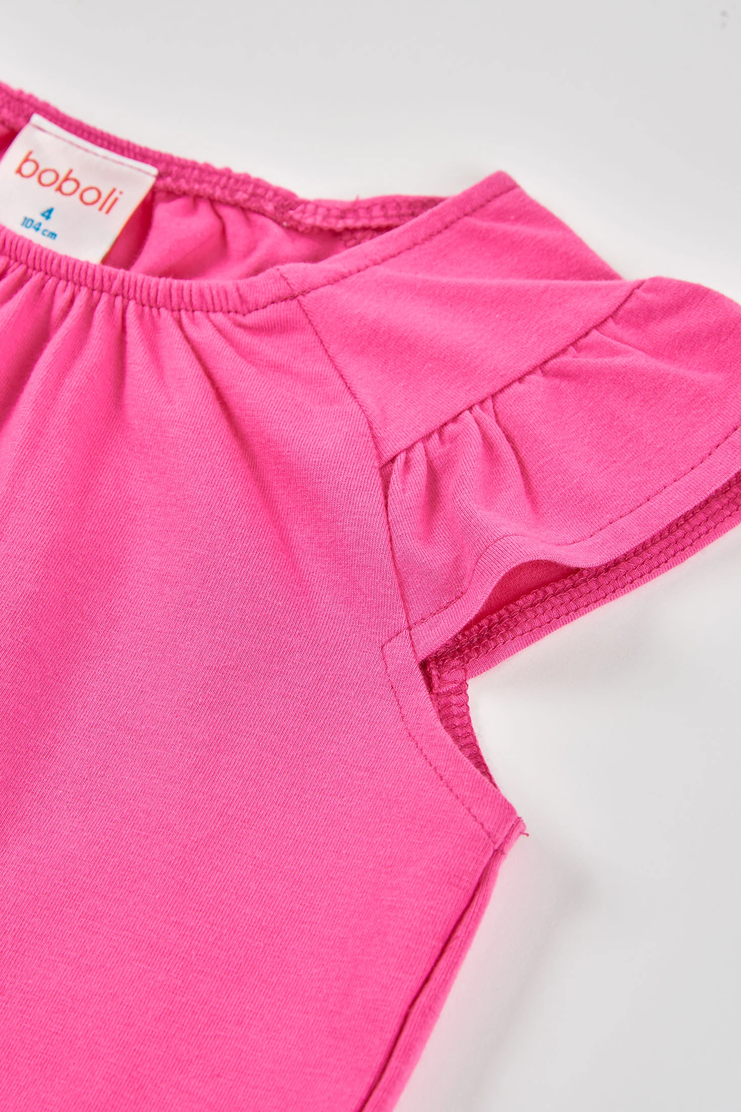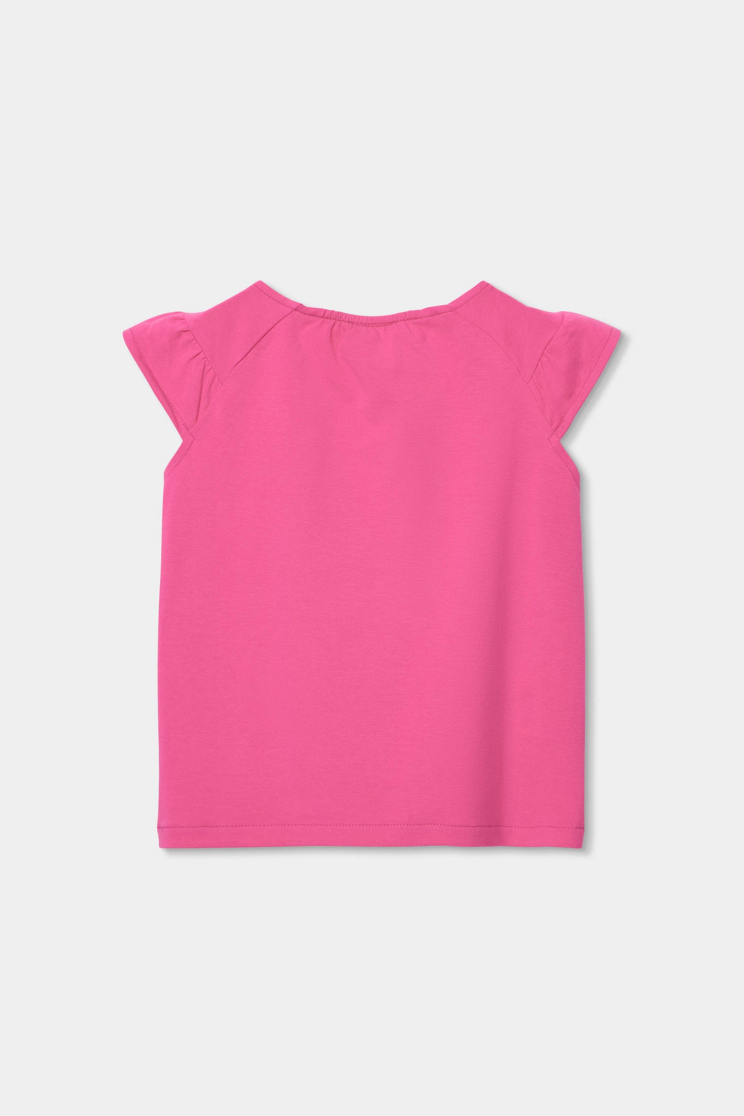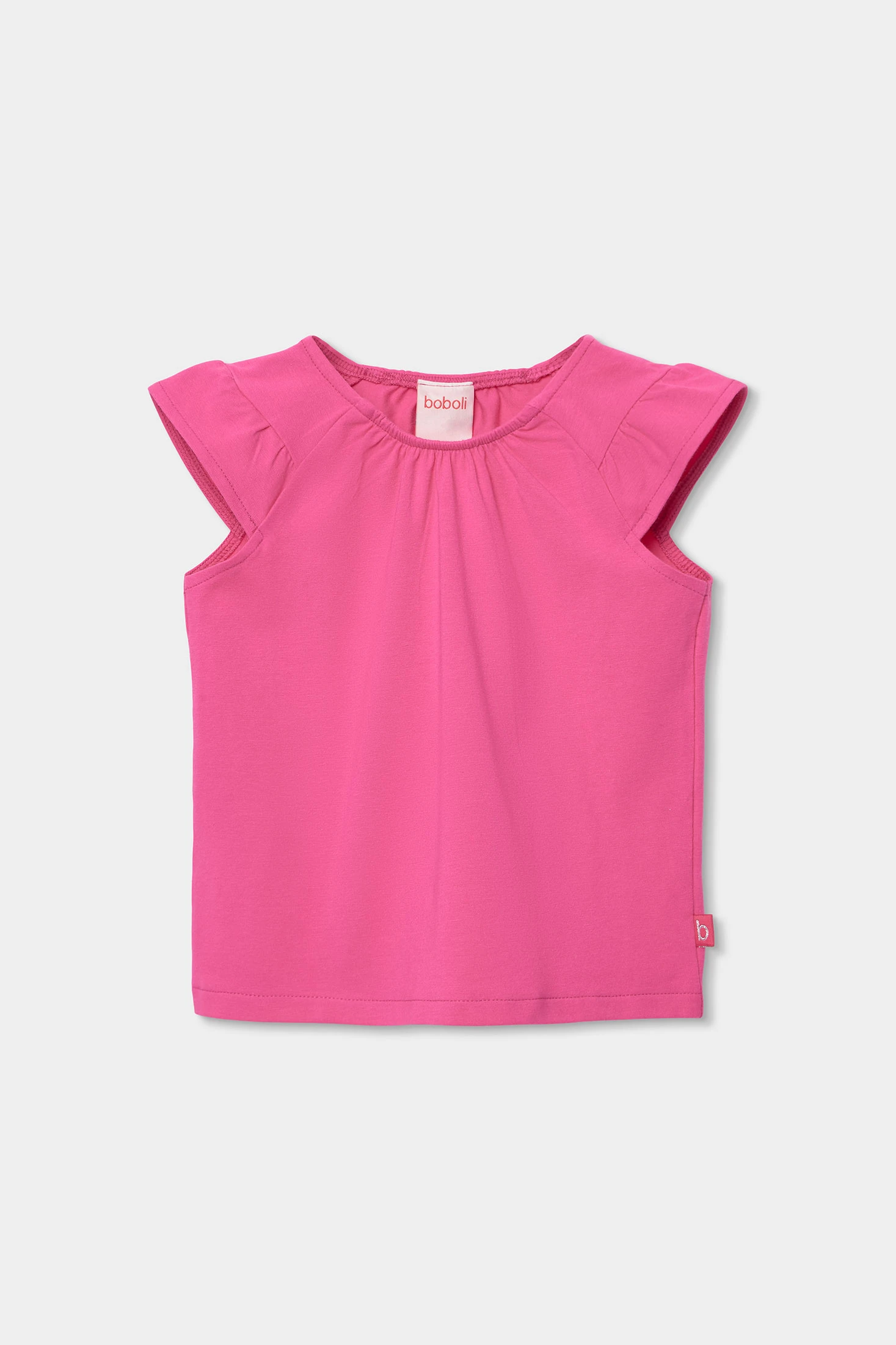 Strick-T-Shirt in Erdbeerfarbe für Mädchen, bequem und perfekt für den Alltag. Das schlichte Design wird durch eine zarte Raffung am Halsausschnitt ergänzt, die für eine besondere und feminine Note sorgt. Es ist aus weichem Baumwollstoff gefertigt und bietet den ganzen Tag über Komfort und Bewegungsfreiheit. Ein vielseitiges Kleidungsstück, das jeder Mädchen-Garderobe Farbe und Freude verleiht.